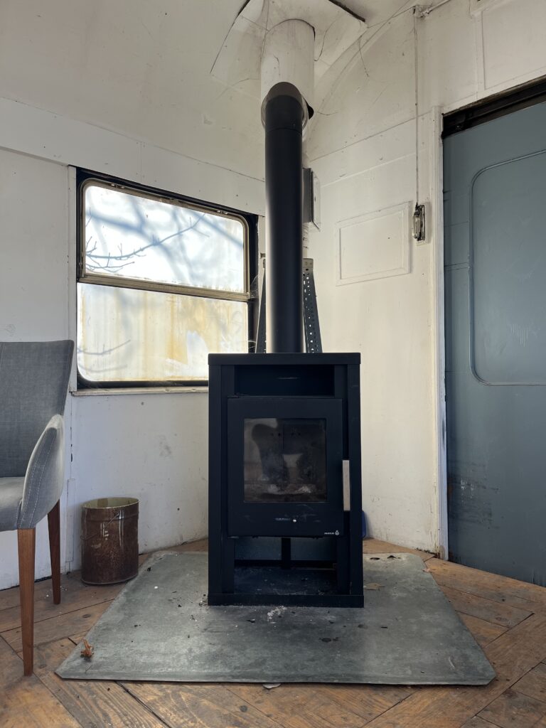 – ist 12 Meter lang und 3 Meter breit– im Sommer kann es sehr warm im Waggon werden. Im Winter kann es sehr kalt werden, hierfür steht ein Holzofen mit Holz zur Verfügung.